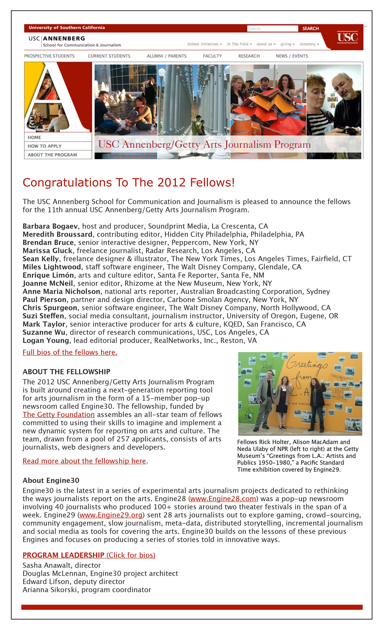 The USC Annenberg/Getty Arts Journalism Fellowship (2012)